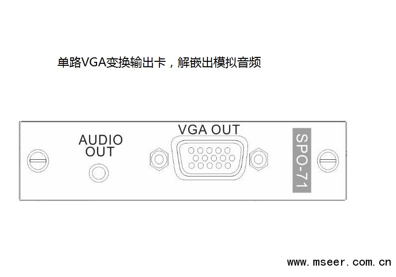 SRO-71 VGA單通道變換輸出卡,配合SMD主機(jī)使用,采用獨(dú)立板卡設(shè)計(jì),每塊卡支持1路VGA輸出,解嵌出模擬音頻,支持最高1920x1200P60的高清圖像傳輸.